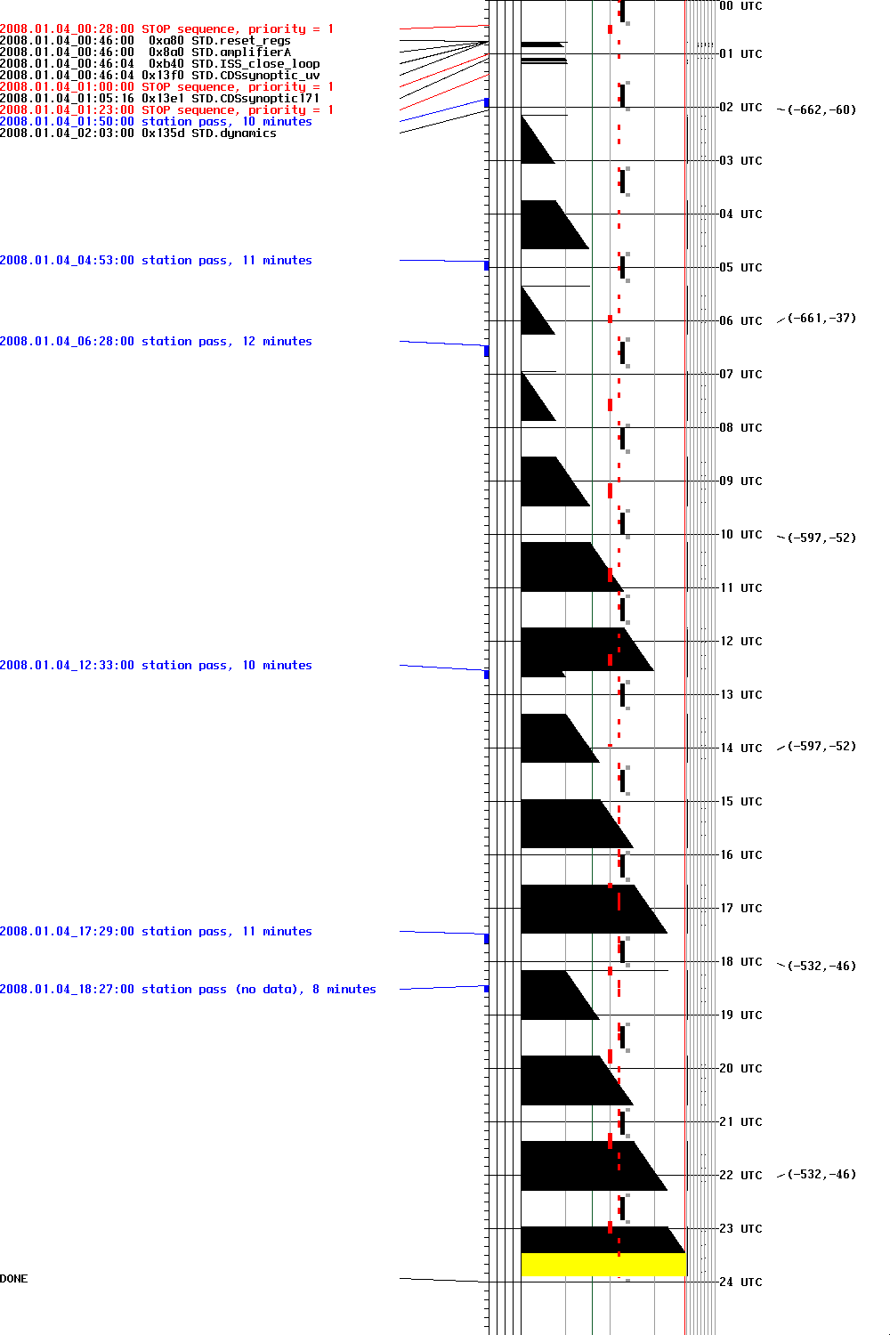 FILE:T08019TIMFIL TITLE:timeline for D019, Saturday, January 19, 2008 PURPOSE:Observe the coronal hole in SW for HOP61