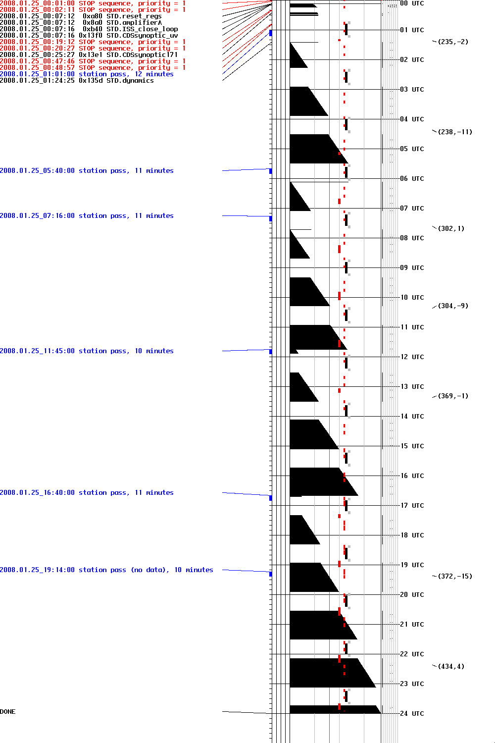 FILE:T08040TIMFIL TITLE:timeline for D040, Saturday, February 09, 2008 PURPOSE:Support HOP 56 and observe AR 10982 as it rolls over the limb HISTORY:created 20080208, DCM COMMENTS:HOP56.utim