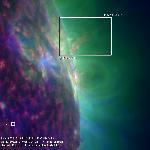 This movie shows an M-class flare, after which the eastern part of the filament (in the projection, roughly a third of its length) is gone and a bright arcade develops at the site of the flare. A massive coronal wave is triggered by this event (see my previous annotations). Yes, the western part of the filament (roughly 2/3rds in the plane of sky) do not seem to care. At all. The structure in the highlighted box does not change the shape _at_all_ in responce to all the changes around it and does not even _wiggle_ in the duration of this movie.