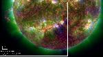 First of all, there is a filament eruption in the foreground. This eruption appears to trigger another eruption. The latter does not have an associated filament but appears as strutures in 171 (yellow) with a light bulb morphology.