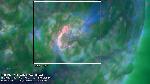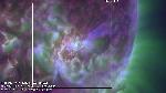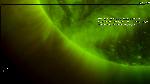 LASCO detected the first signature of the big CME of backside origin at 12:36. Large-scale loops on a large part of the southeastern limb were disturbed including oscillations.