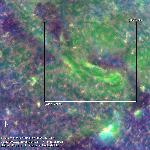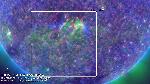 A Coronal Cavity at the northwest limb of the sun. Cool material (white/purple) extends high all the way to the core of the cavity. Red colors show emission from plasma at 2 MK.
