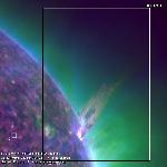 A more clear view of the sympathetic eruption in the running difference movie. The second eruption near the west limb started right after the disturbance of the first eruption arrived.