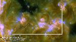 A set of loops over the E limb, above a region still behind the disk, rapidly reconfigures, as in an eruption, but without an obvious eruptive signature.