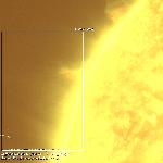 A small, thin, straight, stable prominence protruding from the northeast limb.