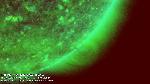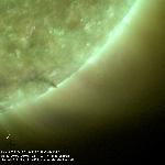 A solar prominence rotating with solar rotation towards the south western limb. Note the prominence's apparent increace in height over time.