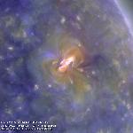 This occurred in a non-active-region, not accompanying any flaring in X-rays (the GOES background was ~A3 around this time) or a CME that could have been detected by STEREO. But it was a nice circular wave. This event may correspond to what Howard and Pizzo (2016) called a blast wave.