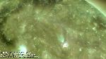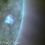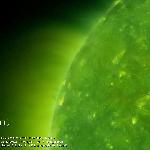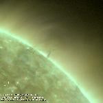 A solar prominence seen in the northwest limb as dark strands that slowly darken and rise higher in the corona as the sun rotates. Note the appearance and disappearance of a dark circular-shaped cavity that appears gradually in the corona surrounding the prominence.