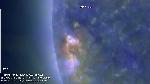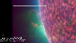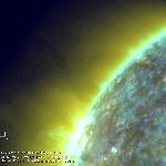 This probably came from slightly behind the limb, not affecting a nice thin structure (current sheet?) in the foreground.