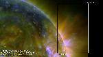 coronal jet where cold plasma goes along long loops and reveals twist structures at the end some shibata type reconnection shape in the corona.