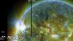 The eruption occurred in the southern region (AR 12182), and temporary dimming is seen across the equator.