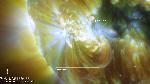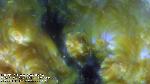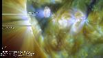 Magnetic reconnection between neighboring loops in this compact emerging flux region leads to intermittent flashes of energy release.