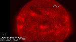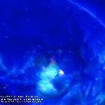 Very subtle eruption, or probably liftoff of material, at high latitudes near the north pole.