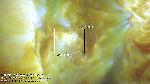 A field configuration exhibits rapidly moving plasma, curving around on along the magnetic field, quieeting down immediately afterward, without opening the region's field.