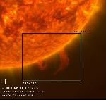 A large prominence erupts, shedding most of its mass.