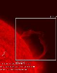 Some activity in the prominence which was swirling like a tornadoe in the previous day. One end of it detaches and most of it (visually) falls down towarfs the other footpoint, while some of it takes off. The prominence is entirely gone after this event.