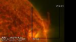 A minisculous prominence has produced a pretty spectacular eruption. The erupted portion stretches in a long bright structure, visually detached from the base. The remaining portion for a short moment takes the form of a pattern of splashes around a drop when it collides with a body of water.