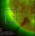 A narrow outflow is seen over the limb. A small filamet eruption occurs around its leg.