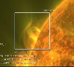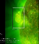 An interesting prominence right at the north pole in projection. It must be located at a very high latitude to appear there.