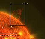 A relatively small filament takes off on the E limb. What is peciliar is that most of kinking seems to happen at its apex.