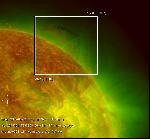 This movie shows an M-class flare, after which the eastern part of the filament (in the projection, roughly a third of its length) is gone and a bright arcade develops at the site of the flare. A massive coronal wave is triggered by this event (see my previous annotations). Yes, the western part of the filament (roughly 2/3rds in the plane of sky) do not seem to care. At all. The structure in the highlighted box does not change the shape _at_all_ in responce to all the changes around it and does not even _wiggle_ in the duration of this movie.