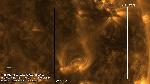 This is a partial eruption of a large filament close to the North pole. The part of it which is clse to the disk rapidly attempts to erupt, but stops on the corona and falls back to the surface. The latter is associated with flows in the rest of the filament as well as the footpoint brightening (211A, not shown here).