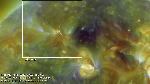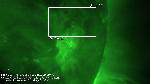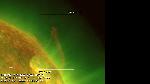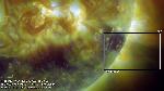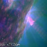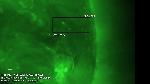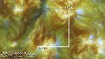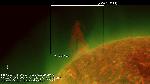 A close-up of the initial phase of the previously annotated eruption. Note that the erupting structure "consists" of thin dark semi-circularly shaped strand and a bright fringe around it. The fringe has uneven "outer" edge, and this edge is the brightest part of the whole structure.