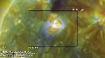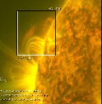 Repeated surging, including two large events, from a compact AR towards the E limb. The second, larger event triggers oscillations in neighboring loops, and may be associated with a CME.