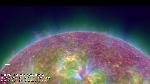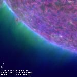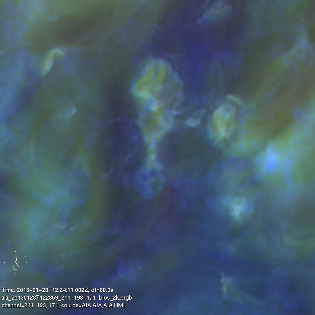 A prominence almost at the S pole swirls around and eventually disappears.