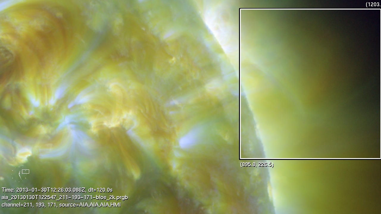 This vent in AR at the W limb possible resembles a spray surge, except that it appears to stay close to the surface.