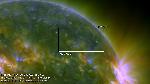 The source region should be slightly back-side, judging from the lack of foot-point brightening. The erption itself is not outstanding, but we see loop oscillations during the eruption.