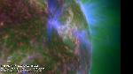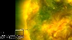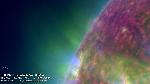 Around the same time a disk region (top right) had a minor eruption, another region on the east limb (encircled) also erupted.