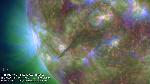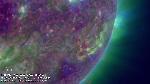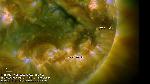 I, halocme, normally do not pay much attention to this phenomenon, but here report a seqence of events found in the movie. The following times are just approximate. 1100-1400: Activation of a filament in NW (not spectacular), 1200-1300: Minor eruption from the AR in the S hemisphere (close to CM), 1500-1530: Eruption from the W limb, 1540-1630: Eruption from the E limb.