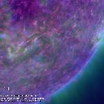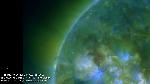 Synchronous activity from a small active region on the SE limb which flares as a channel of activity appears to erupt all the way from a souther-hemispheric quiet-Sun region ahead of the flaring region extending??? across a northern hemispheric region into poleward quiet Sun.