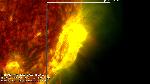 This M7.7 flare has a cusp shape resembling a candle flame. (r,g,b) = (94,335,193).