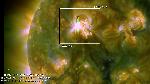 An eruption at the SE limb is only visible in 171A. It is followed byt the growth of a very bright and long-lived bindle of loops, which, as it appears from the plane of sky projection, enclose a filament.