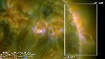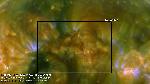 In addition to two brigthenings/eruptions across the coronal hole near central meridian, at least three other regions seem to erupt around the same time (the SW eruption is quite late). The one near east limb is indicated by a box. How are some of these magnetically connected?